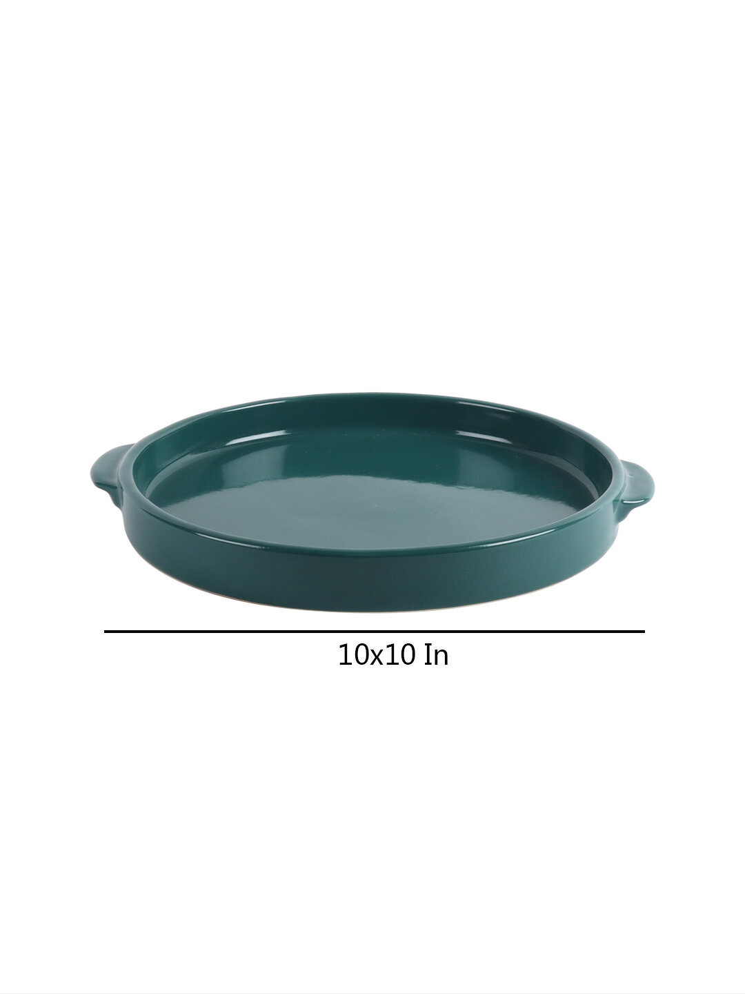 A Green Pizza Serving Dish With Handle is perfect to Serve your Guest this festive season , it can be used to gift your loved ones