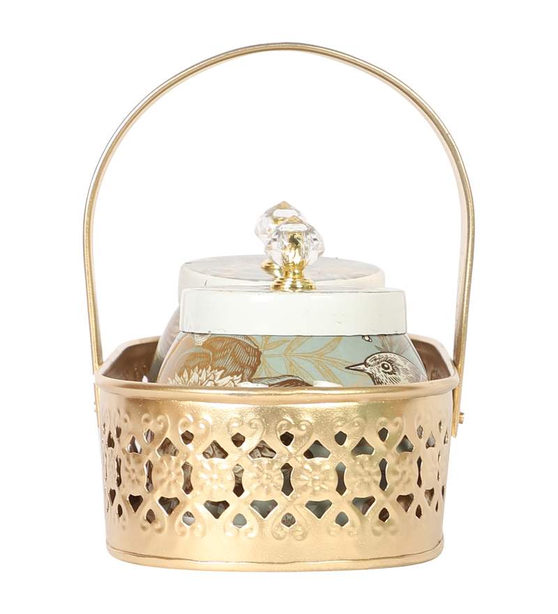 A Bird Print Metal Jar With basket Set of 2 is Perfect to Serve your Guest this festive season , it can be used to gift your loved ones