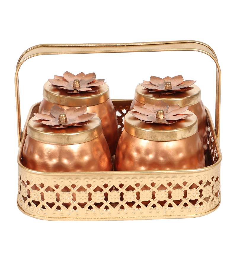 A Gold Basket With 4 Metal Jars is Perfect to Serve your Guest this festive season , it can be used to gift your loved ones
