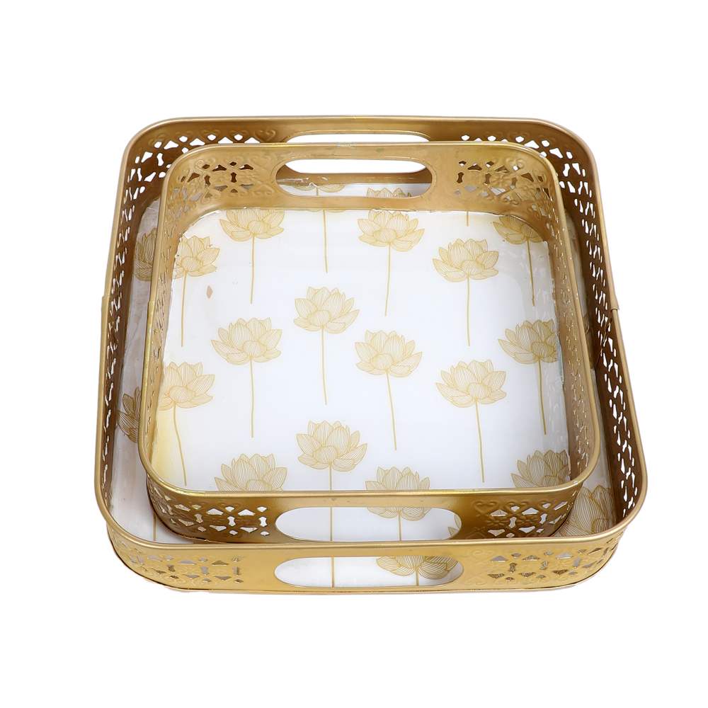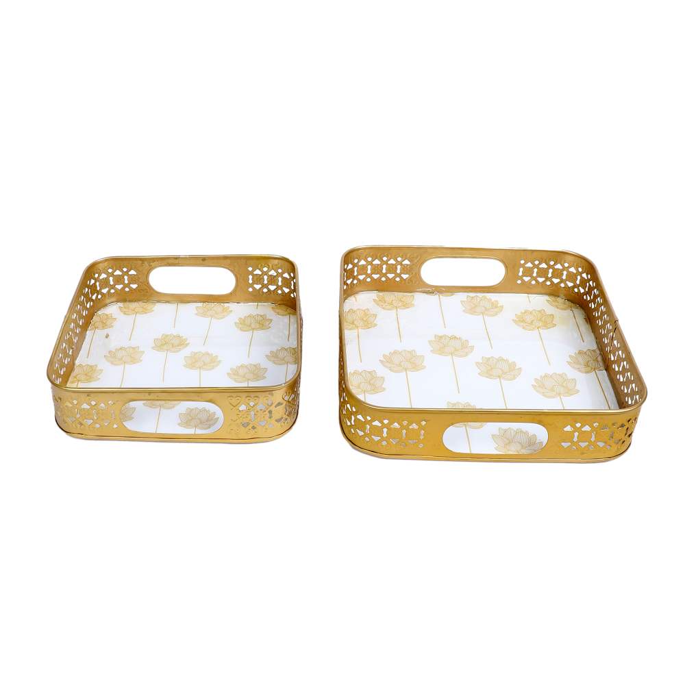 A Gold Lotus Meena Tray Set of 2 is Perfect to Serve your Guest this festive season , it can be used to gift your loved ones