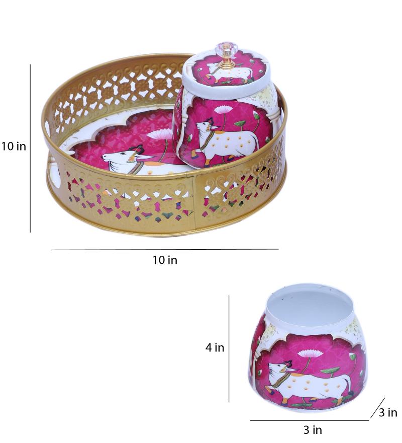 A Blue & White Cow Round Basket With Jar Set of 3 is Perfect to Serve your Guest this festive season , it can be used to gift your loved ones