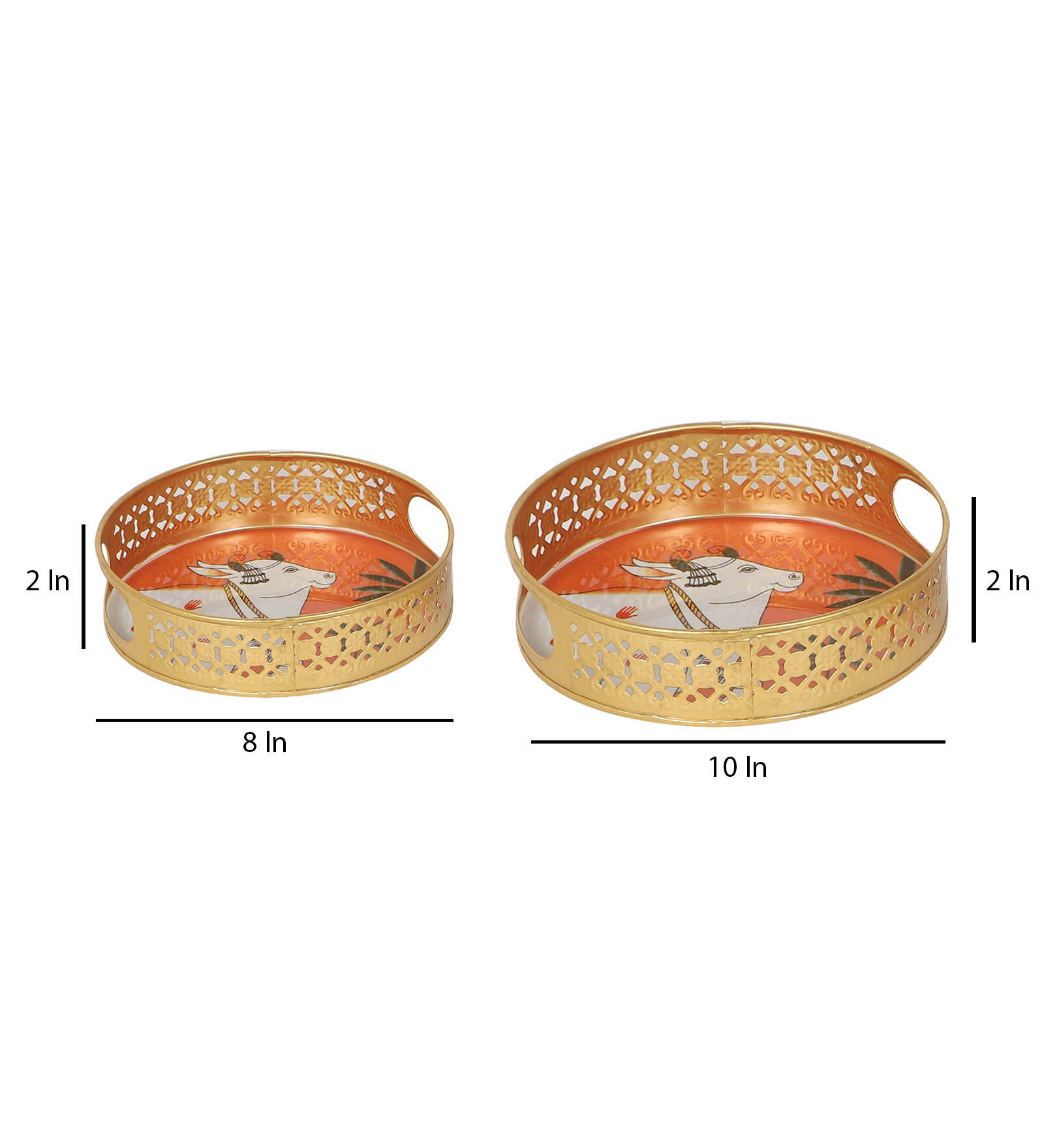 A Round Orange Pichwai Tray Set of 2 is Perfect to Serve your Guest this festive season , it can be used to gift your loved ones
