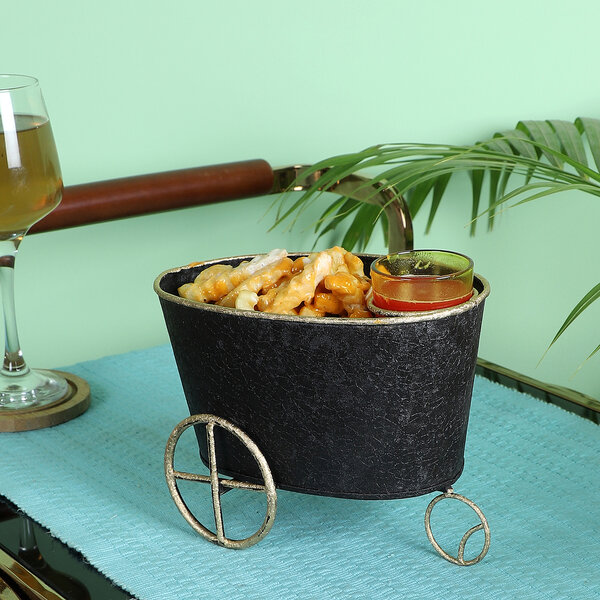 A Wheel Barrow Snacks Platter with Glass perfect to Serve your Guest this festive season , it can be used to gift your loved ones