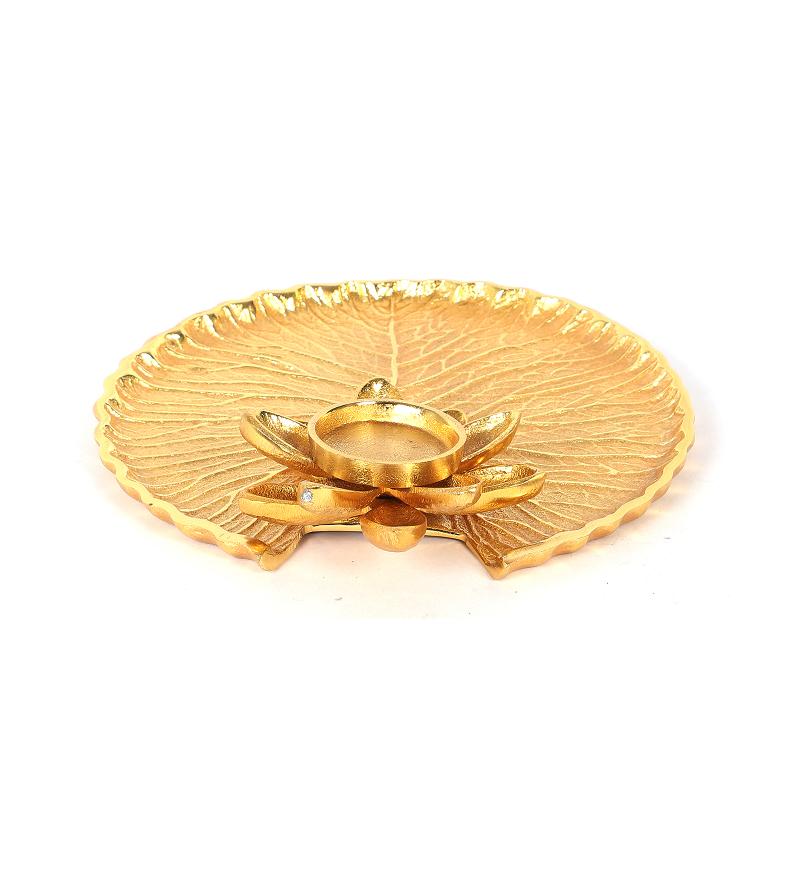 An Gold Aluminium Pooja Thali is perfect for decorating your home & Office this festive season, it can be used to gift your loved ones