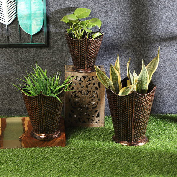 A Copper Flower Pot SHape Planter Set of 3 is perfect to decorate your home & Office, it can be used to gift your loved ones