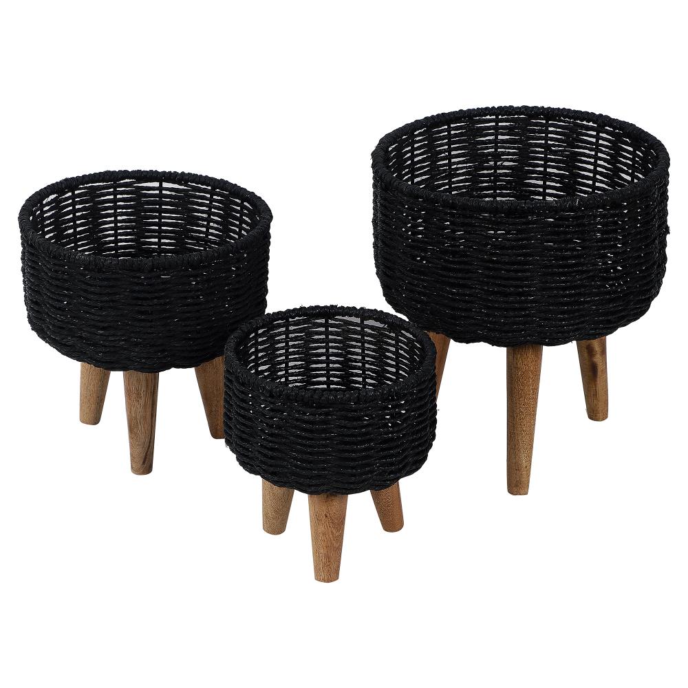 A Jute & Metal Black Planter Set with Wooden Legs Set of 3 is perfect to decorate your Home & Office, it can be used to gift your loved ones