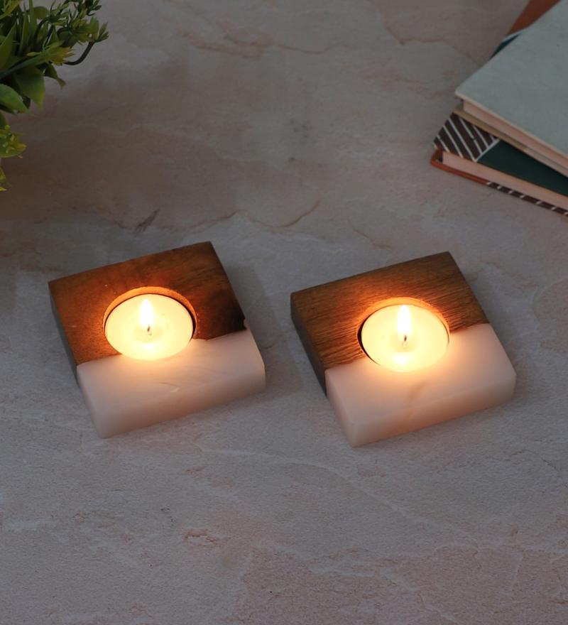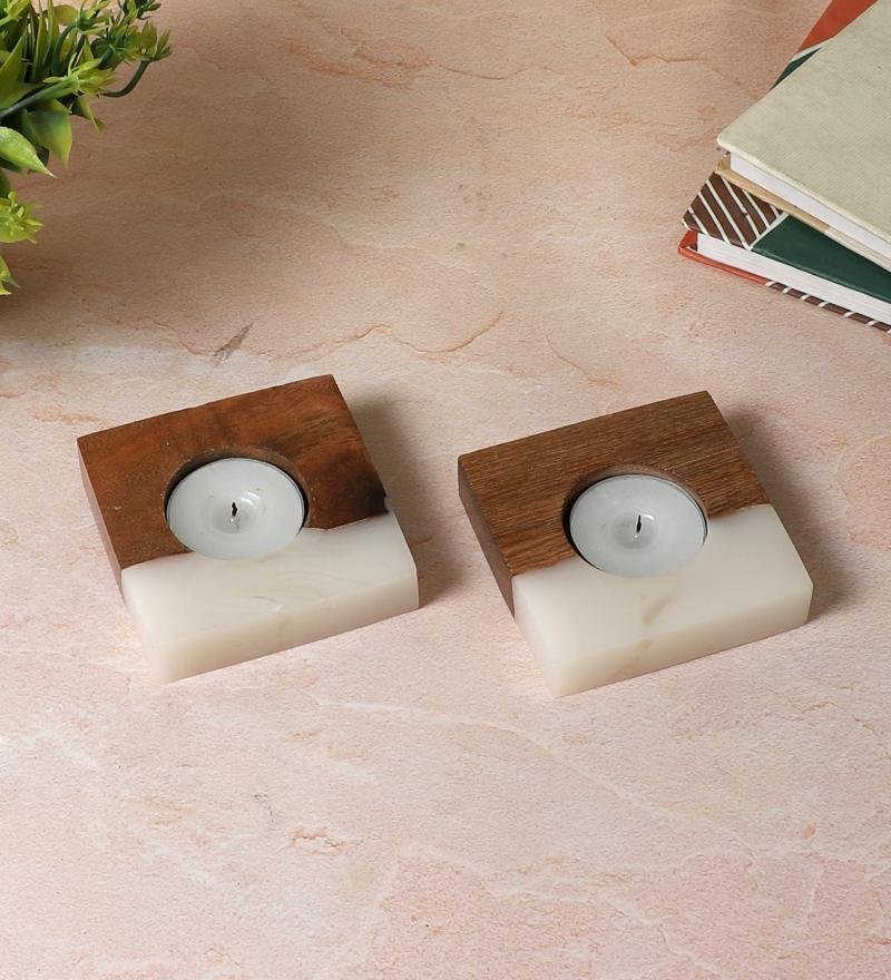 A Cream Resin & Mangowood Tealight Holder Set of 2 is perfect to decorate your Home & Office, it can be used to gift your loved ones