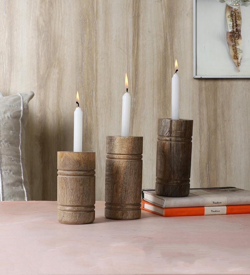 A Mangowood Pillar Candle Stand Set of 3 is perfect to decorate your Home & Office, it can be used to gift your loved ones